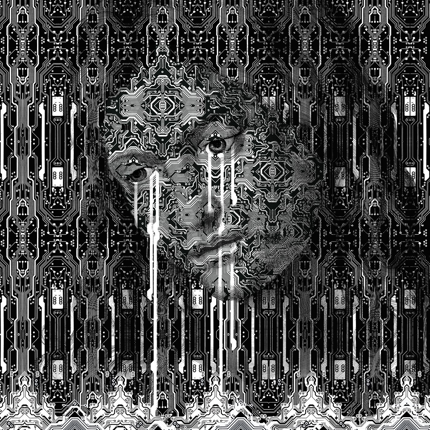 Chris reclaims engravings of Renaissance images and layers them with a mélange of modern detritus – from aluminium cans to discarded laptop motherboards to a surgical skull – scanned at ultra-high resolution to reveal surprising new views and hidden landscapes.