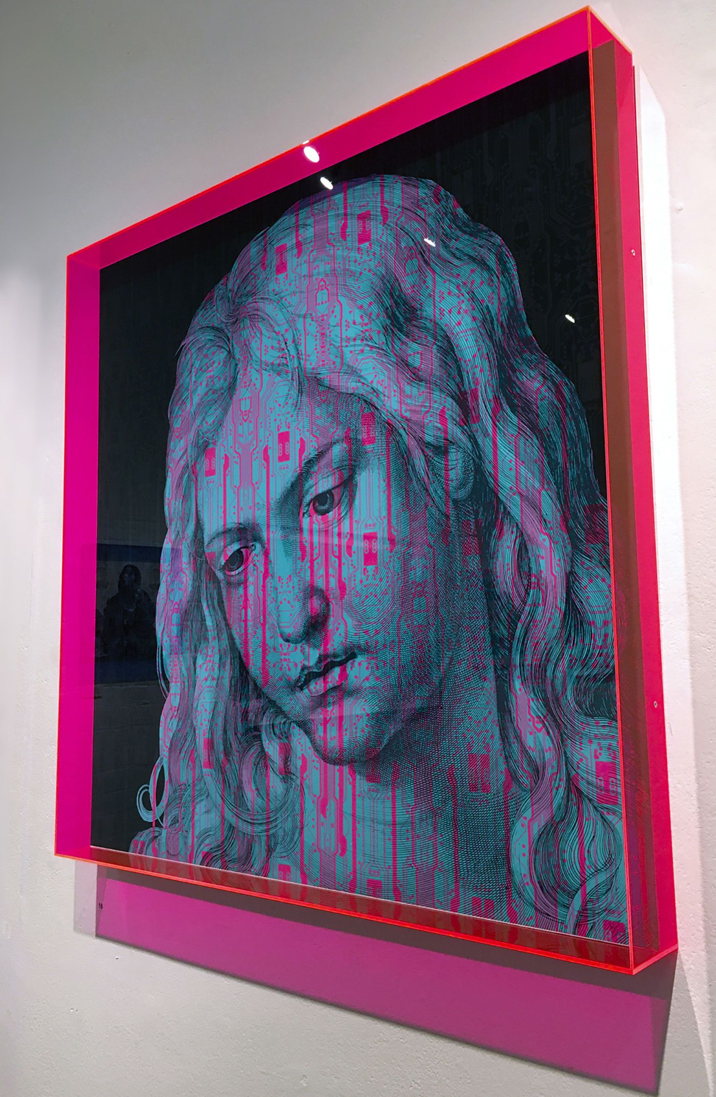'Coccus Ilicus' (Chris Orr, 2022) framed in pink acrylic box